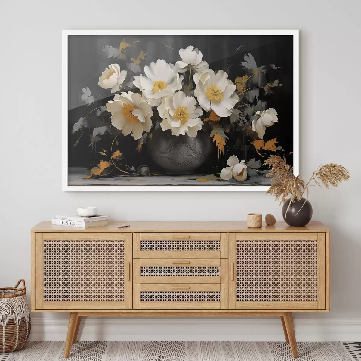 Je kunt het schilderij ophangen aan schroeven. Hiervoor leveren we bevestigingen bij onze foto's, zodat je de foto gemakkelijk kunt ophangen.