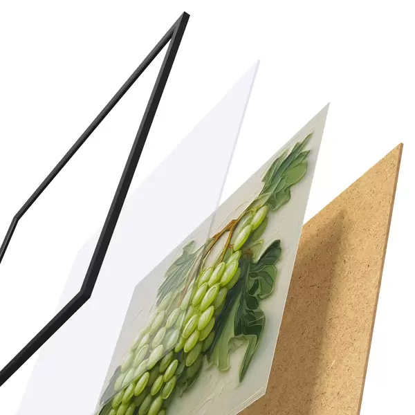 De poster bestaat uit een frame, plexiglas, geprinte afbeelding en spaanplaat achterkant. De poster kan meteen aan de muur worden gehangen dankzij de bevestigingen op de achterkant.