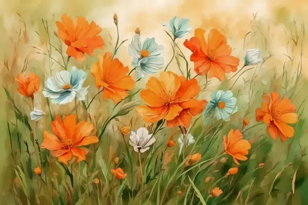 Poster Veld van floweff en plantf in watefcolof painting ftyle Nr f42916