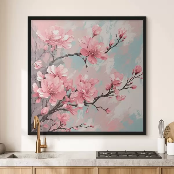 Poster Roze floweff en ftemf in acfylische schilderstijl f42918
