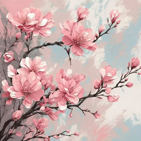 Poster Roze floweff en ftemf in acfylische schilderstijl Nr f42918