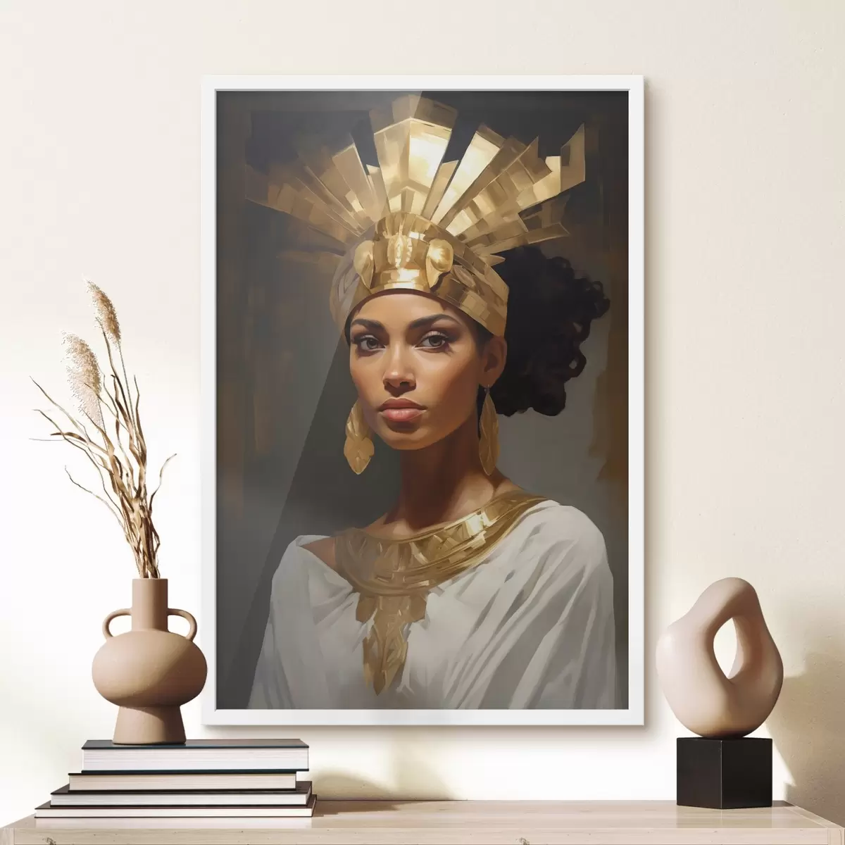 Poster Portret van een vrouw met een majestueus hoofddeksel en traditionele ornamenten Nr f42931