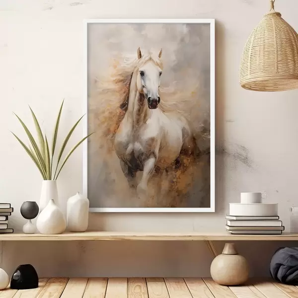 Poster Schilderachtig portret van een wit paard in beweging Nr f42932