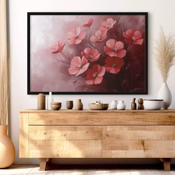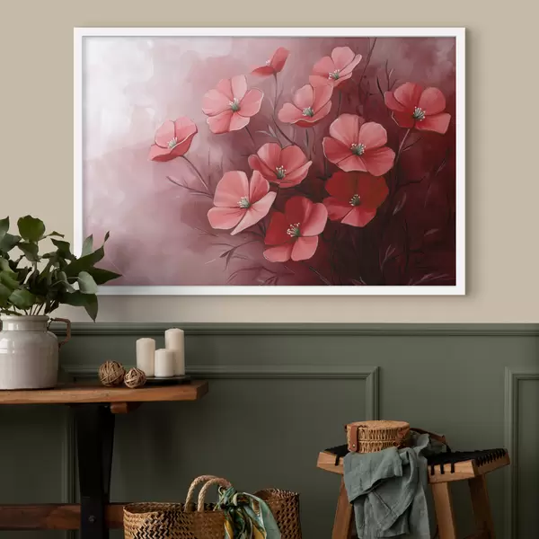 Poster Rode bloemen op een rode achtergrond Nr f42970