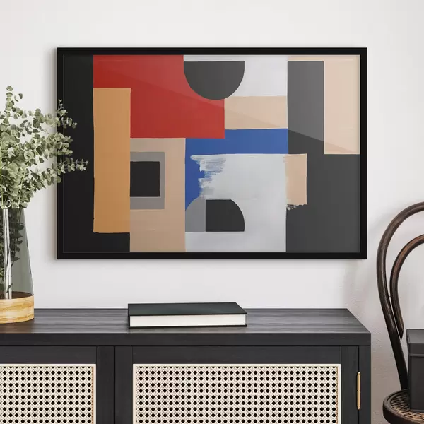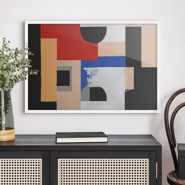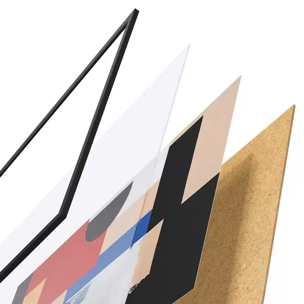 De poster bestaat uit een frame, plexiglas, geprinte afbeelding en spaanplaat achterkant. De poster kan meteen aan de muur worden gehangen dankzij de bevestigingen op de achterkant.
