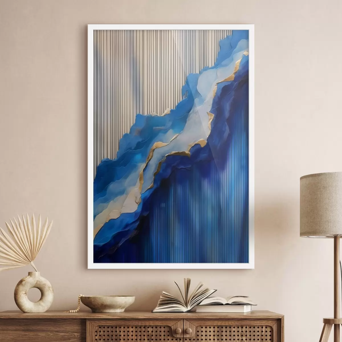 Poster Abstracte blauwe texturen met lijnen op de achtergrond Nr f43002