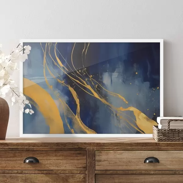 Poster Abstractie in blauwe en gele tinten Nr f43014