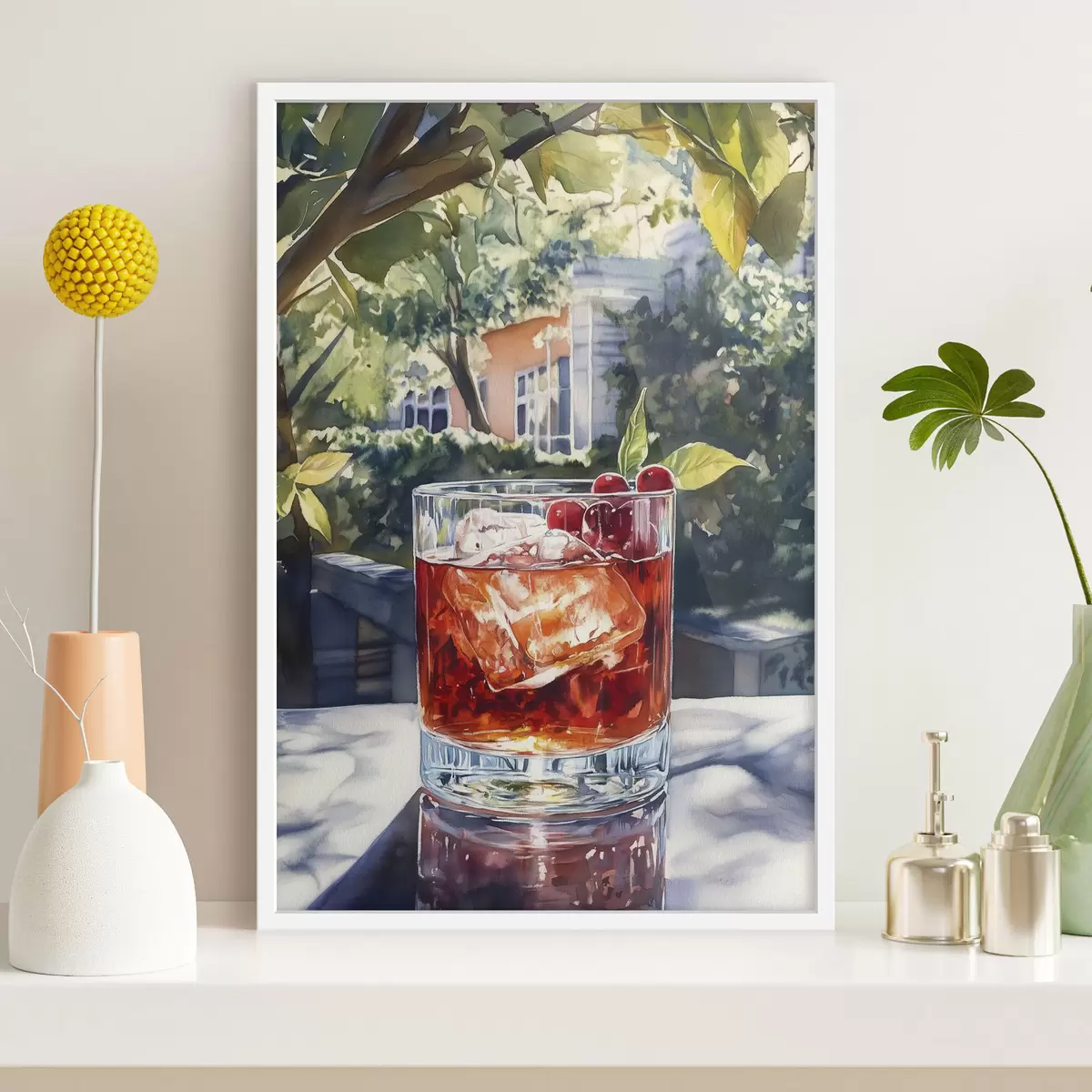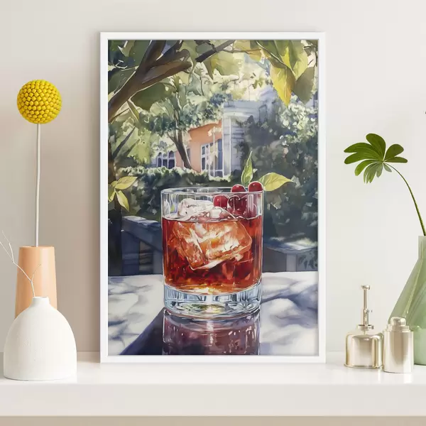 Poster Cocktail met bessen, aquarelstijl, esthetische stad, zomernatuur Nr f43059