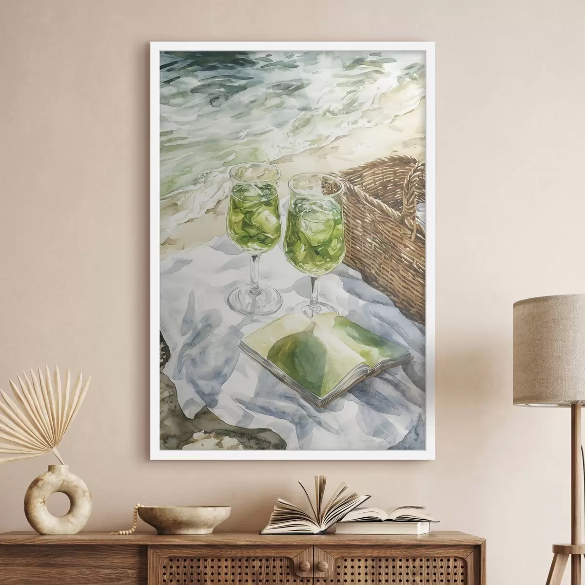 Poster Cocktails op het strand, aquarel tekening, oceaan, zomer f43067