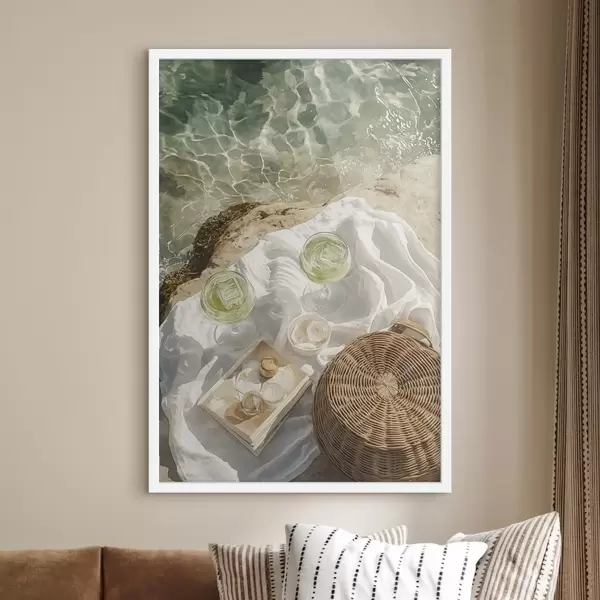 Poster Zomerse esthetiek, oceaangolven, strand, cocktails, aquarelstijl f43069