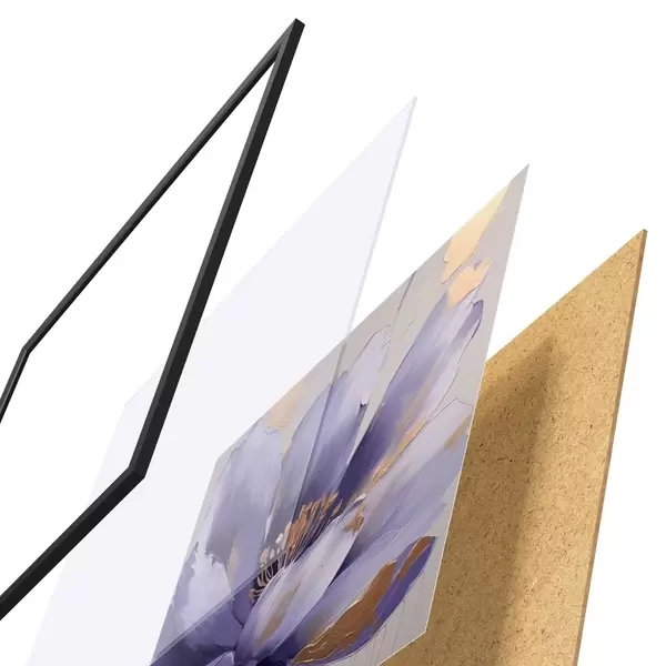 De poster bestaat uit een frame, plexiglas, geprinte afbeelding en spaanplaat achterkant. De poster kan meteen aan de muur worden gehangen dankzij de bevestigingen op de achterkant.