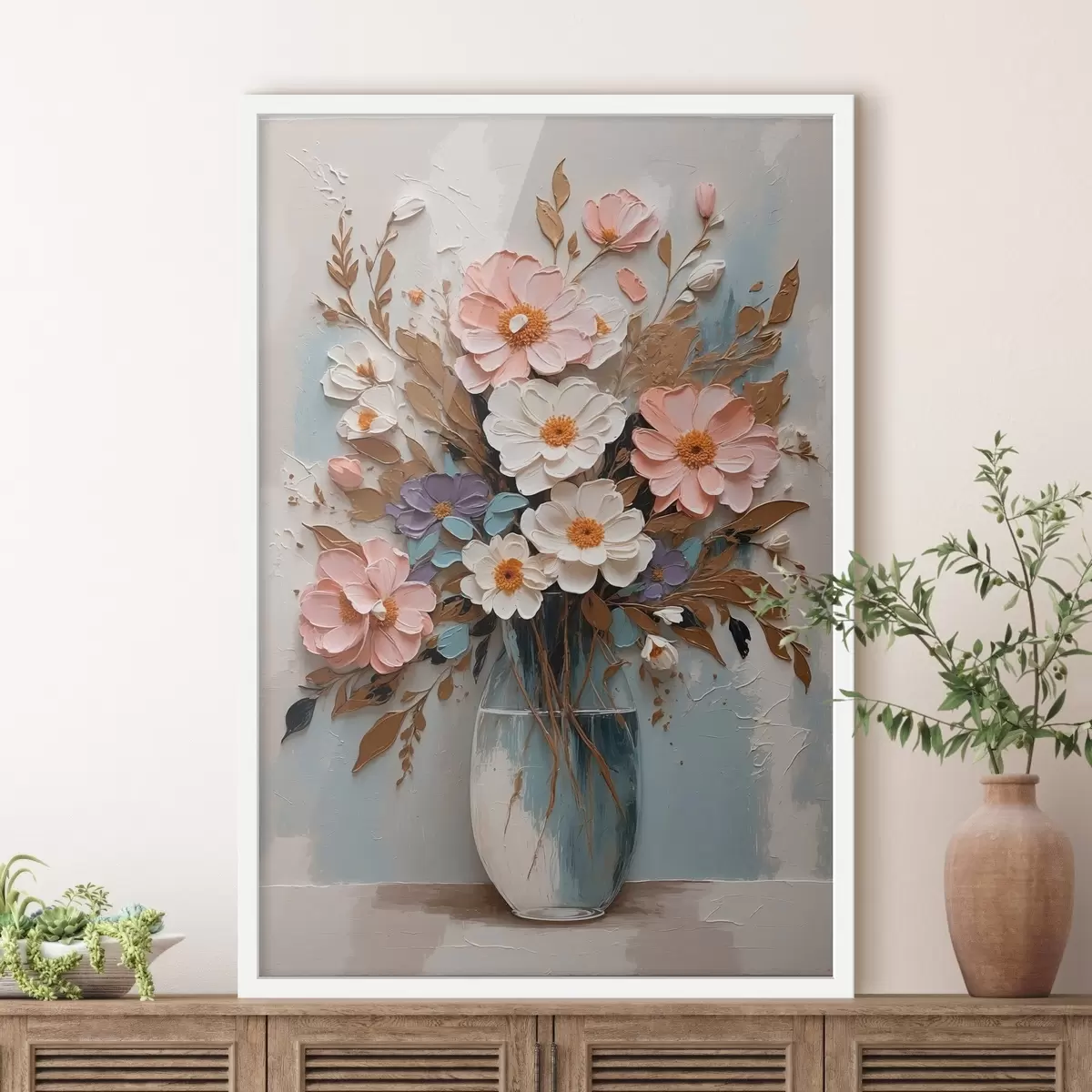 Poster Roze en witte bloemen in een transparante vaas Nr f43089