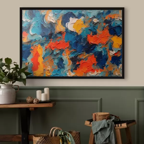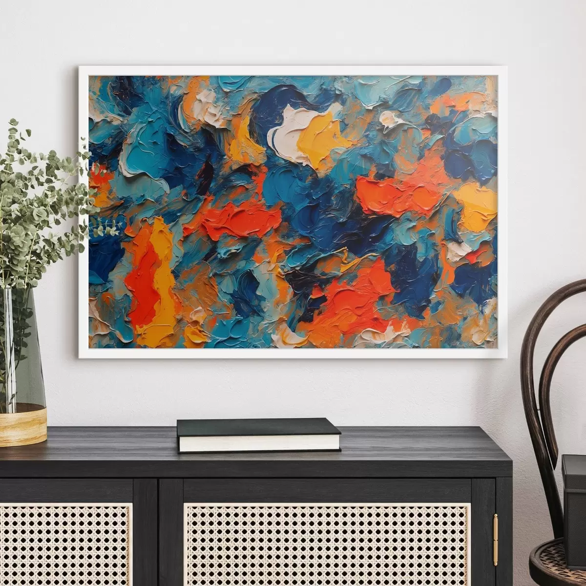 Poster Abstract schilderij in olieverfstijl met witte, blauwe en rode kleuren Nr f43093