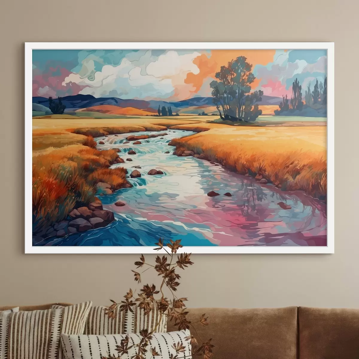 Poster Beek in het veld in de stijl van aquarelschilderen Nr f43110