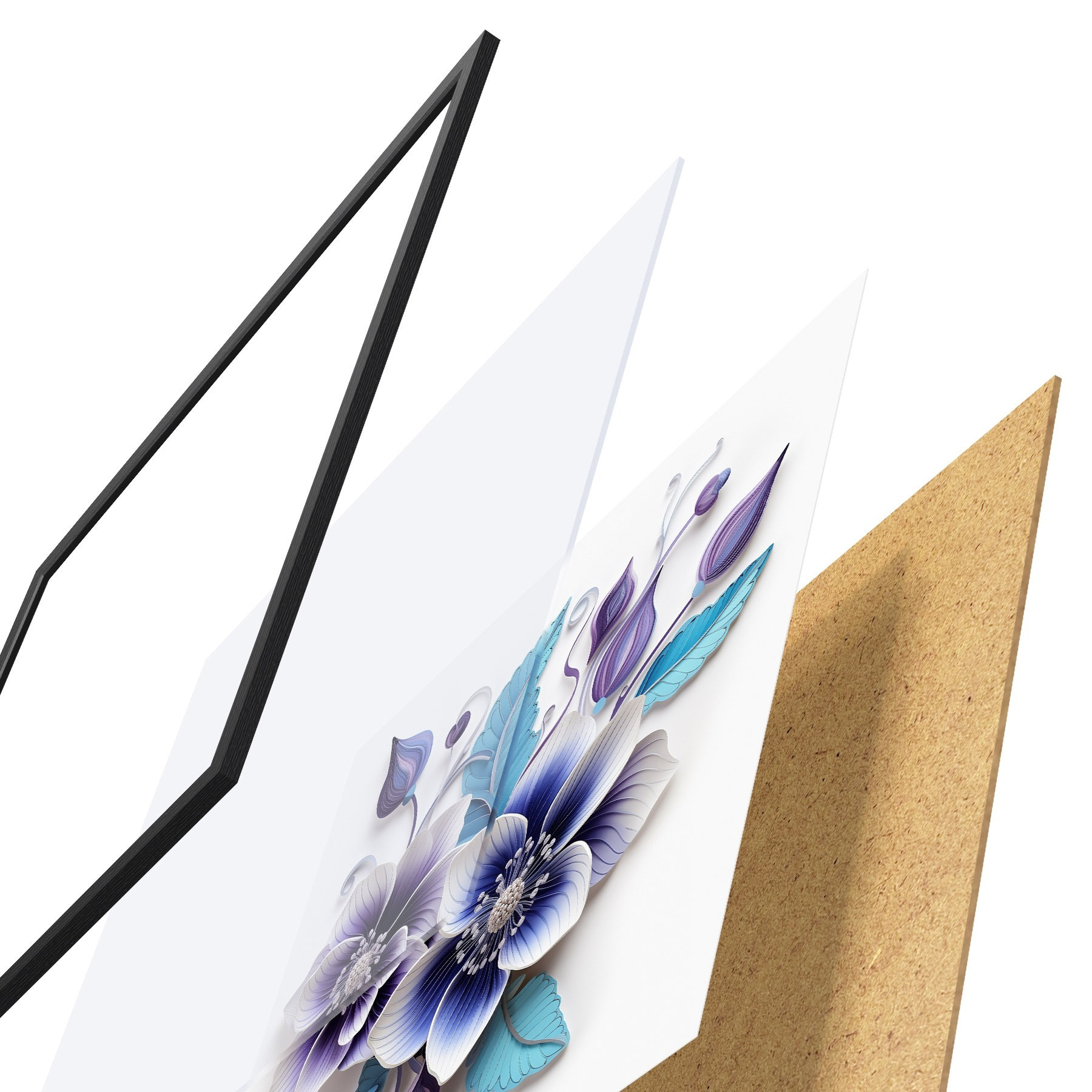 De poster bestaat uit een frame, plexiglas, geprinte afbeelding en spaanplaat achterkant. De poster kan meteen aan de muur worden gehangen dankzij de bevestigingen op de achterkant.