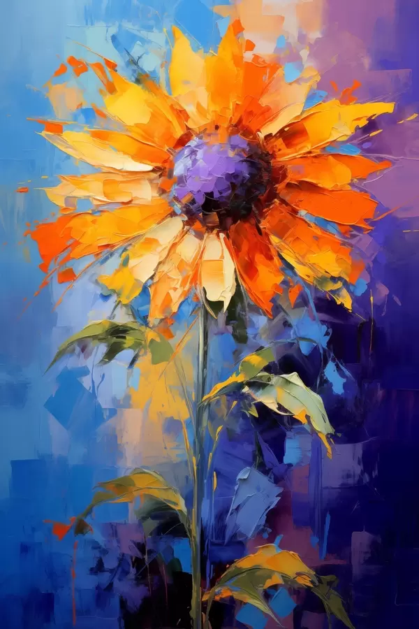 Poster Een levendige zonnebloem in abstracte schilderstijl Nr f43133