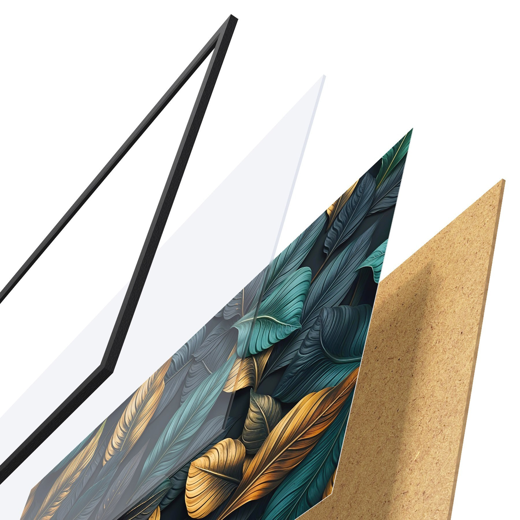 De poster bestaat uit een frame, plexiglas, geprinte afbeelding en spaanplaat achterkant. De poster kan meteen aan de muur worden gehangen dankzij de bevestigingen op de achterkant.