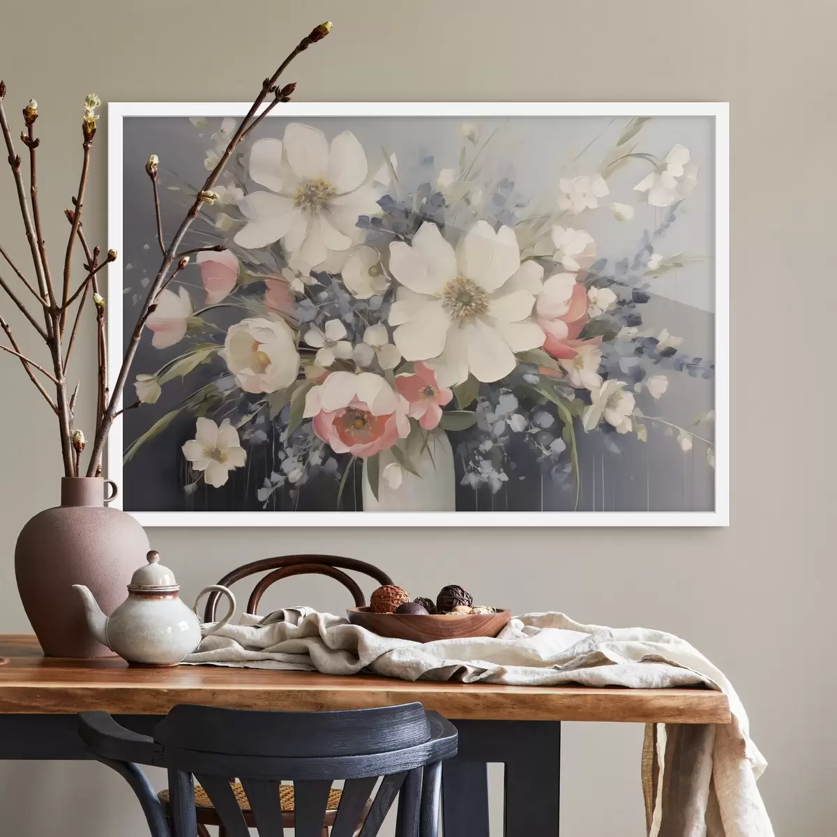 Je kunt het schilderij ophangen aan schroeven. Hiervoor leveren we bevestigingen bij onze foto's, zodat je de foto gemakkelijk kunt ophangen.