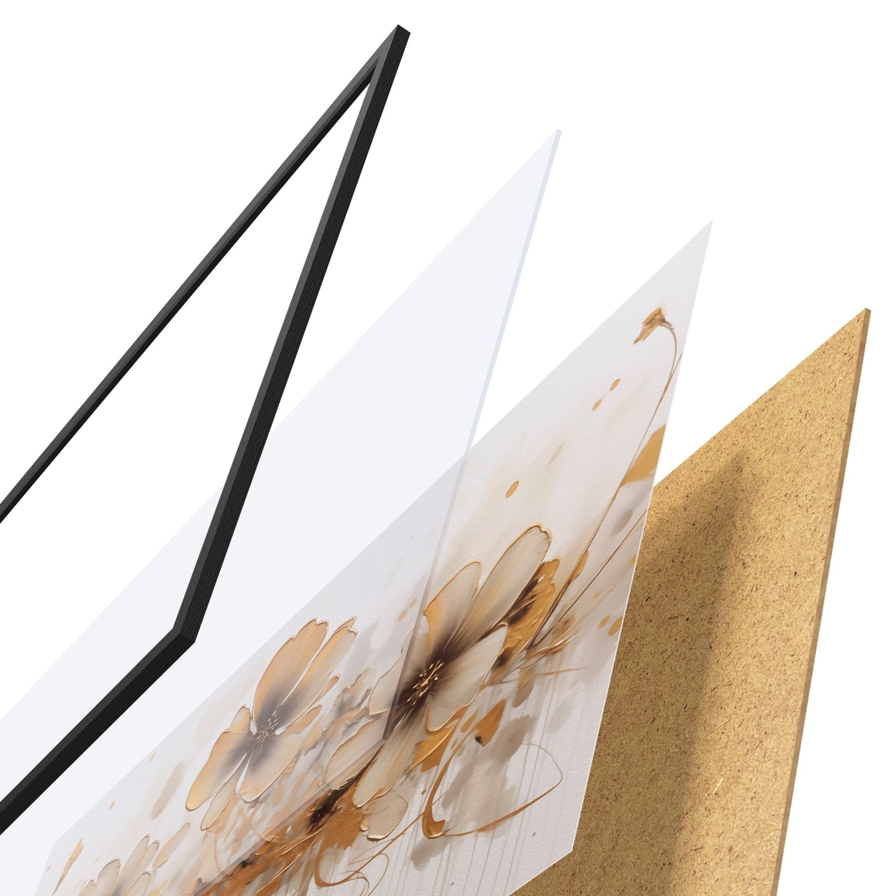 De poster bestaat uit een frame, plexiglas, geprinte afbeelding en spaanplaat achterkant. De poster kan meteen aan de muur worden gehangen dankzij de bevestigingen op de achterkant.