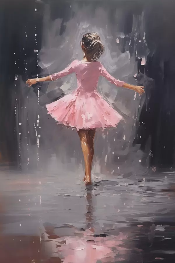 Poster Mensen, meisje in roze jurk, imitatie olieverfschilderij f43258