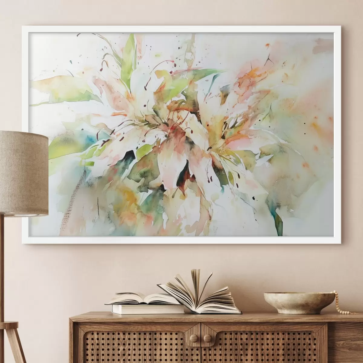 Je kunt het schilderij ophangen aan schroeven. Hiervoor leveren we bevestigingen bij onze foto's, zodat je de foto gemakkelijk kunt ophangen.