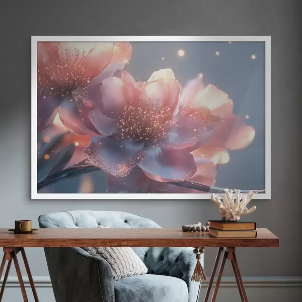 Poster Magische roze bloem met zonnestralen Nr f43328