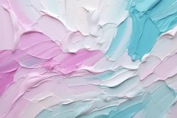 Poster Een abstract olieverfschilderij met dikke streken roze, witte en turquoise verf, waardoor een structuureffect ontstaat Nr f43393