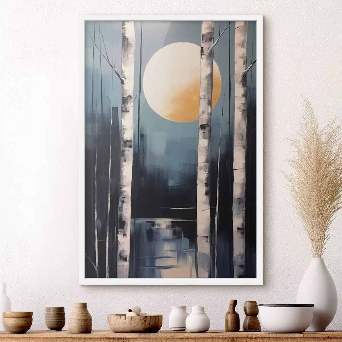Poster Grafische afbeelding van berkenbos Nr f43413