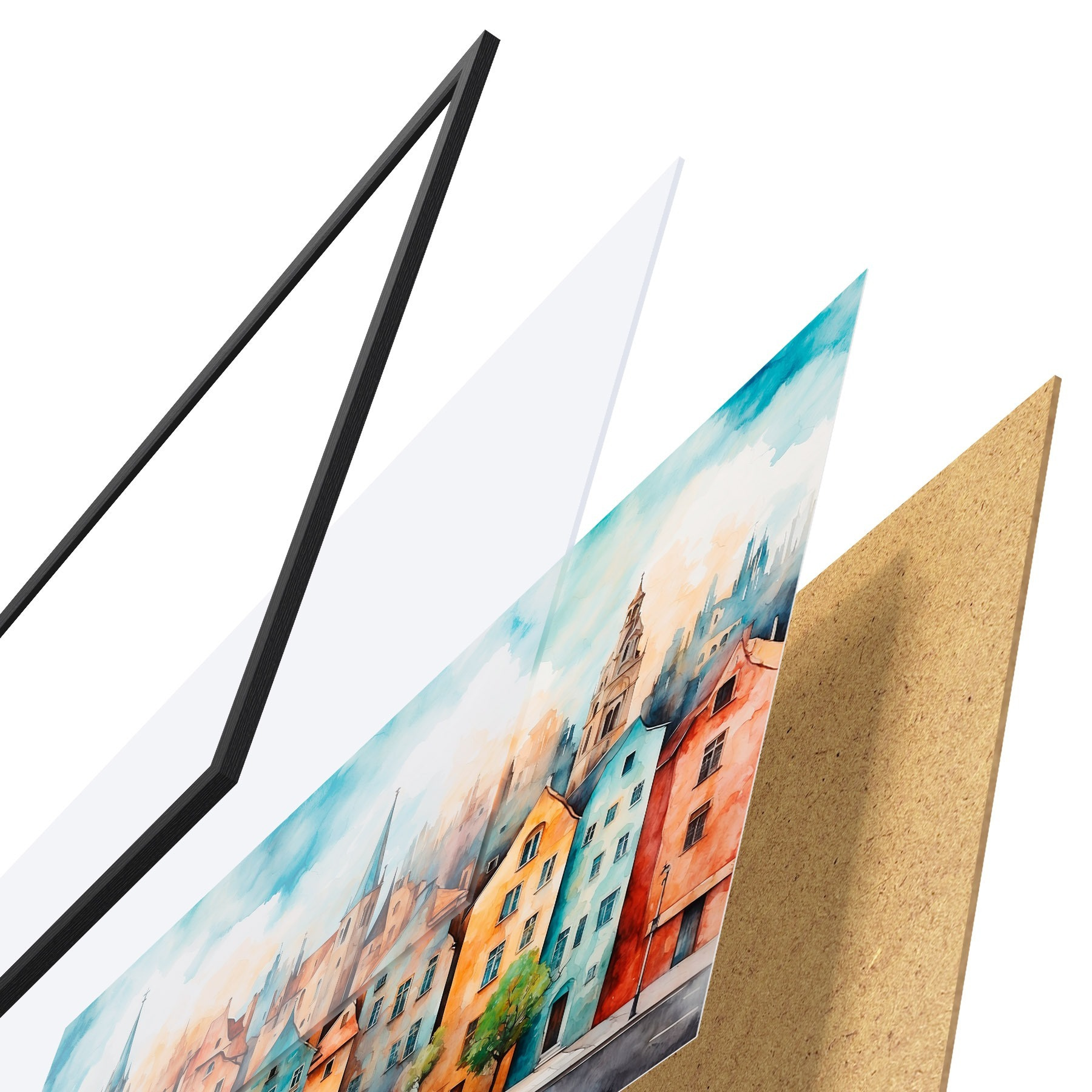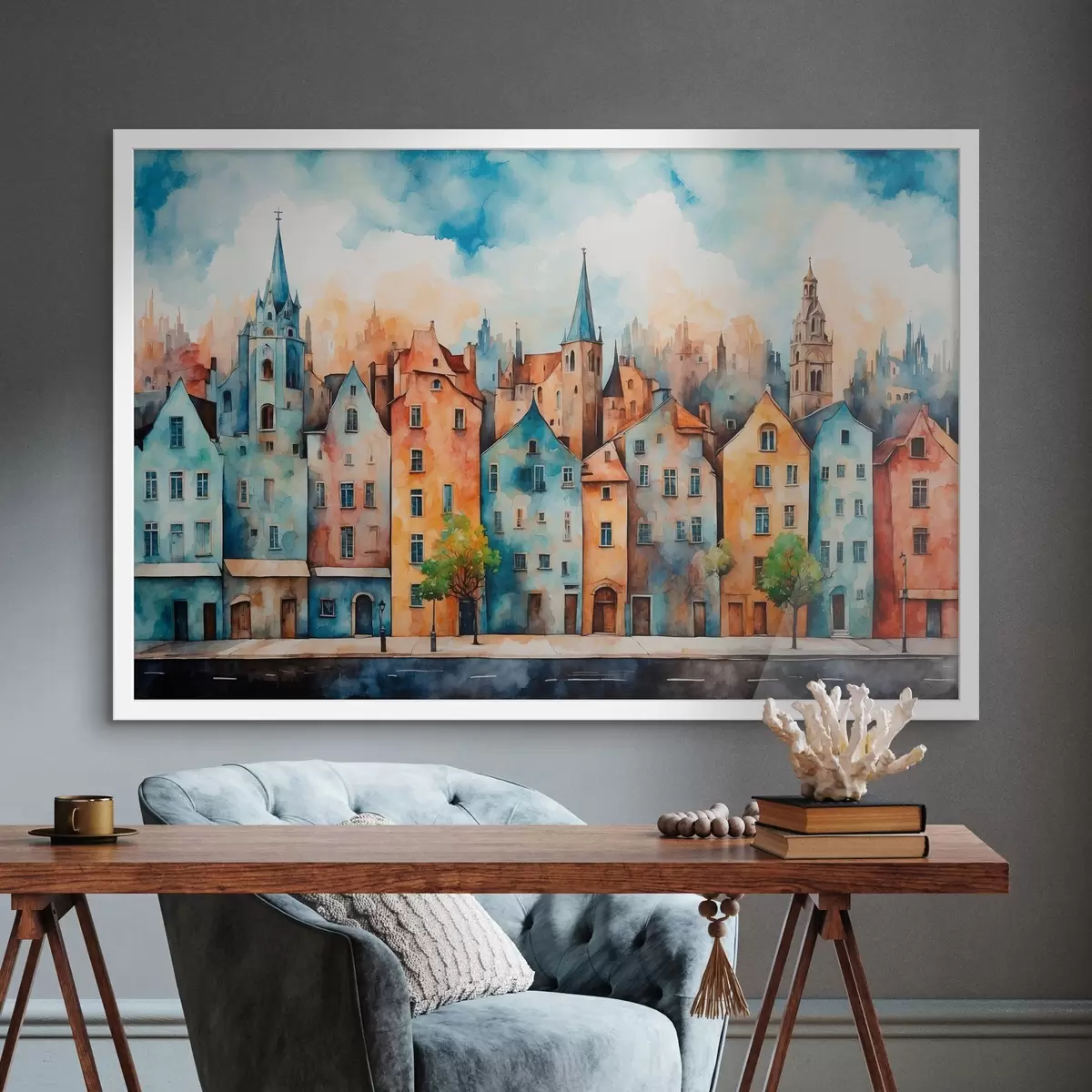 Poster Europese stad in stijl aquarel schilderij Nr f43441