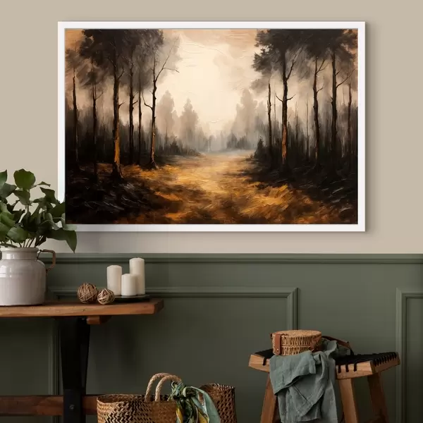 Poster Zwart bos in acrylschilderstijl f43448