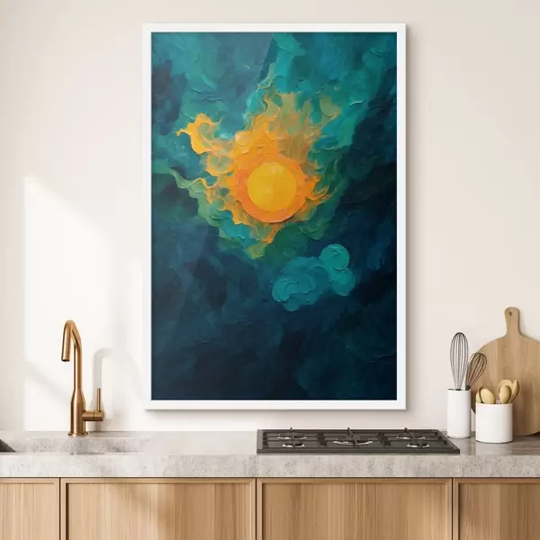 Poster Zon op donkere achtergrond in olieverfschilderijstijl f43459