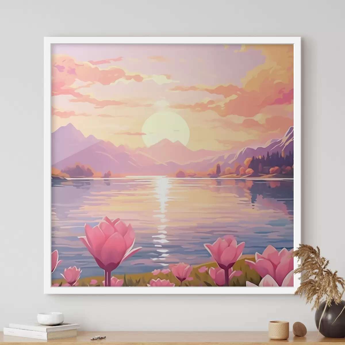 Je kunt het schilderij ophangen aan schroeven. Hiervoor leveren we bevestigingen bij onze foto's, zodat je de foto gemakkelijk kunt ophangen.
