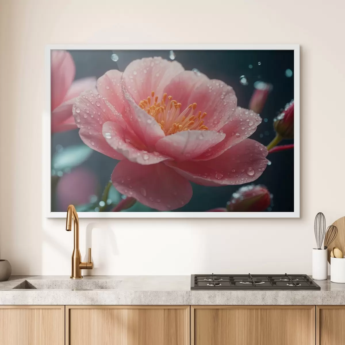 Poster Hyperrealistische bloem met dauwdruppels Nr f43873