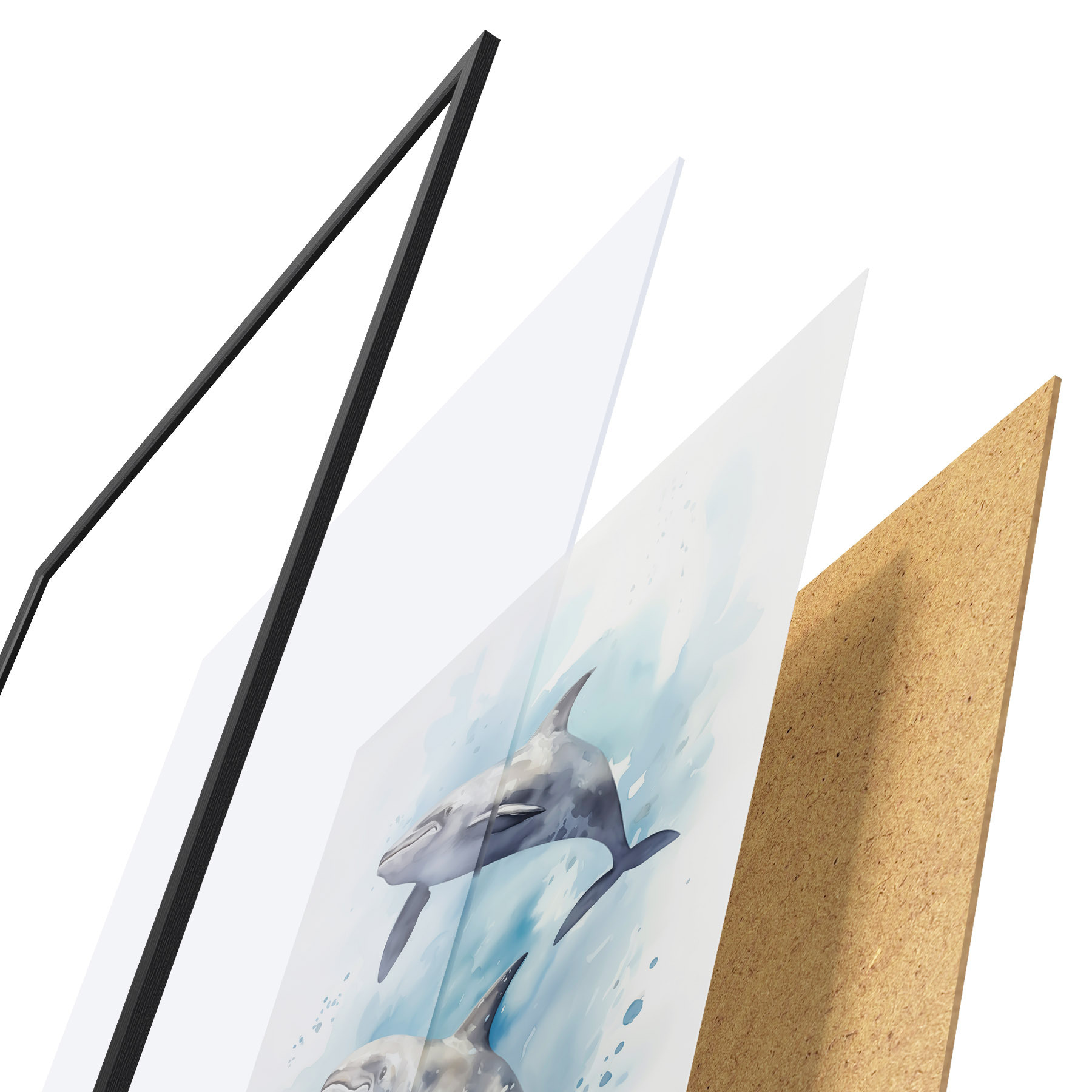 De poster bestaat uit een frame, plexiglas, geprinte afbeelding en spaanplaat achterkant. De poster kan meteen aan de muur worden gehangen dankzij de bevestigingen op de achterkant.