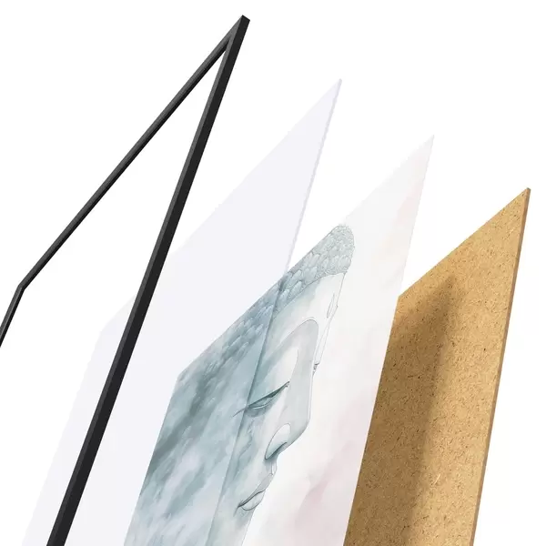De poster bestaat uit een frame, plexiglas, geprinte afbeelding en spaanplaat achterkant. De poster kan meteen aan de muur worden gehangen dankzij de bevestigingen op de achterkant.