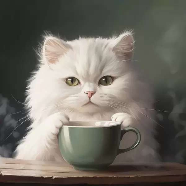 Poster Witte kat met groen kopje Nr f44032