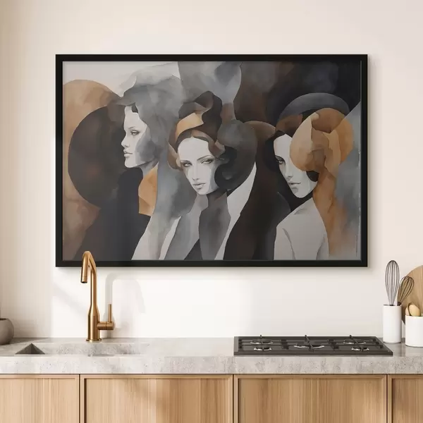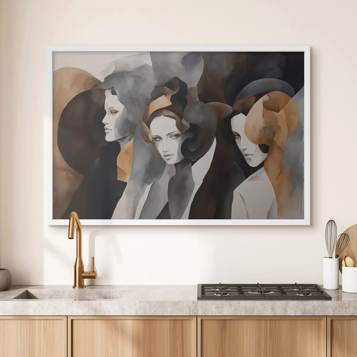 Poster Abstract schilderij met vrouwengezichten Nr f44060