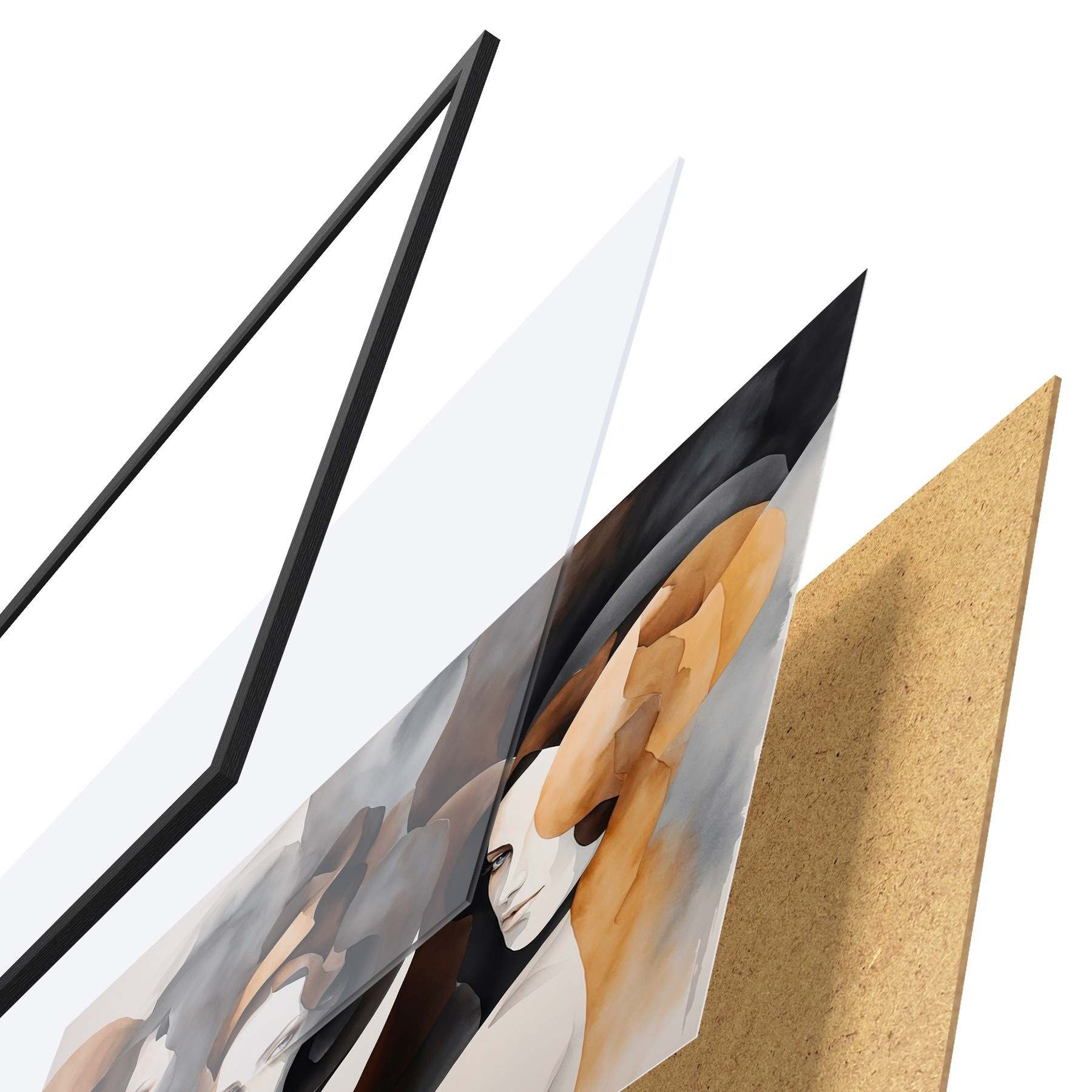 De poster bestaat uit een frame, plexiglas, geprinte afbeelding en spaanplaat achterkant. De poster kan meteen aan de muur worden gehangen dankzij de bevestigingen op de achterkant.