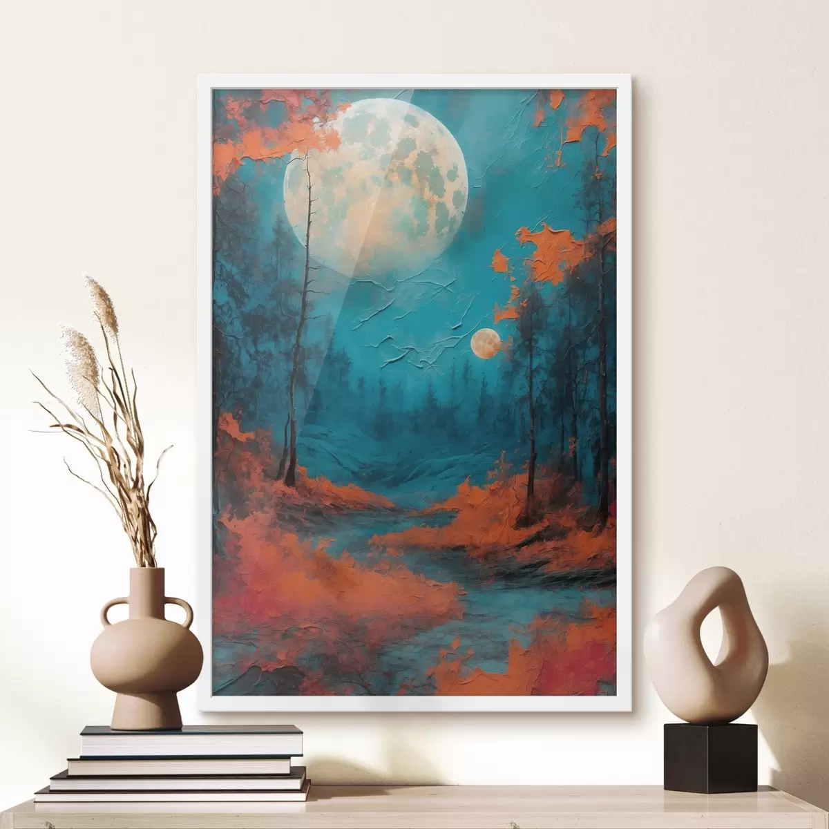 Poster Zwart bos in zwarte maan in olieverfschilderijstijl Nr f44063
