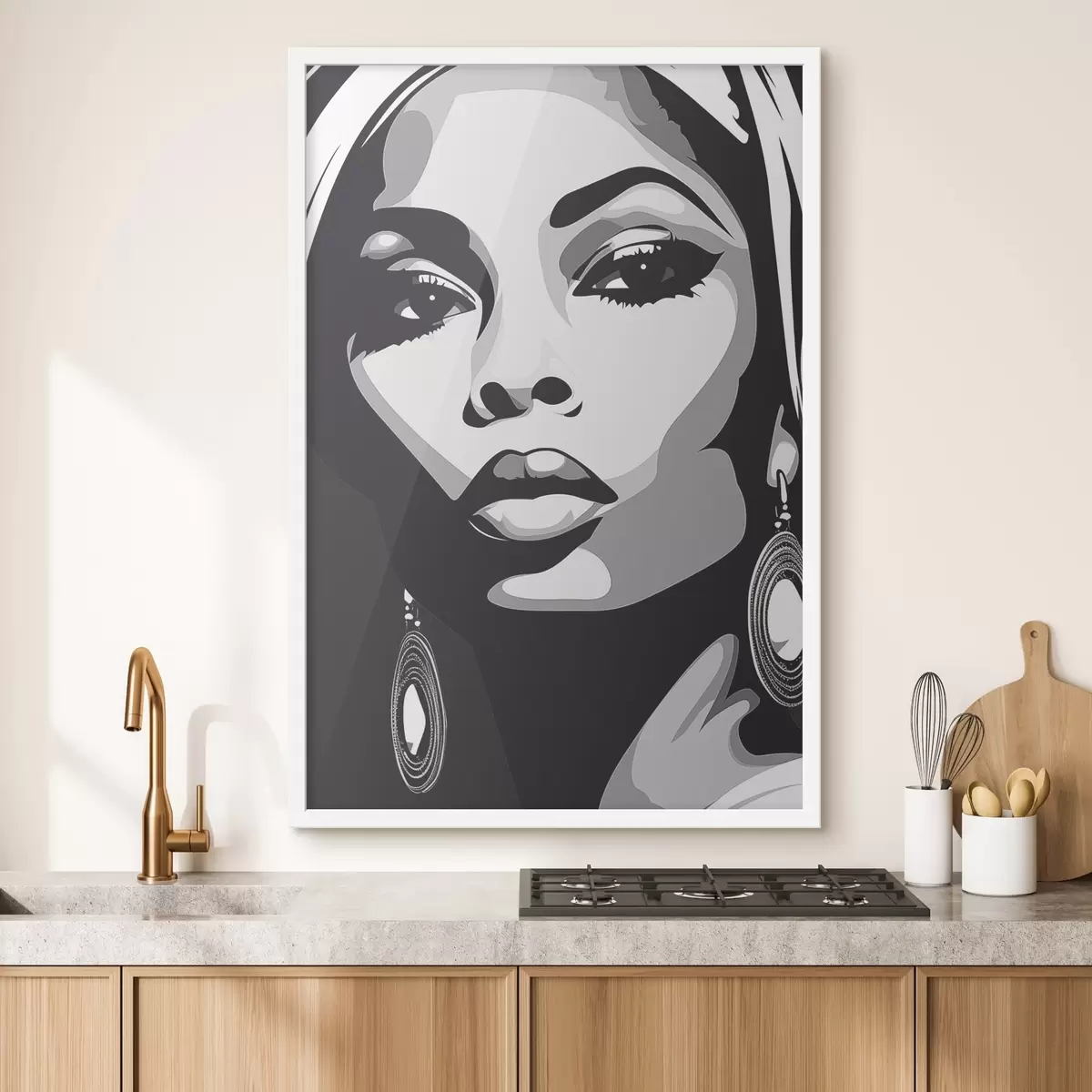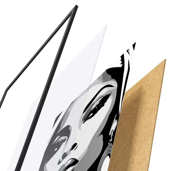 De poster bestaat uit een frame, plexiglas, geprinte afbeelding en spaanplaat achterkant. De poster kan meteen aan de muur worden gehangen dankzij de bevestigingen op de achterkant.