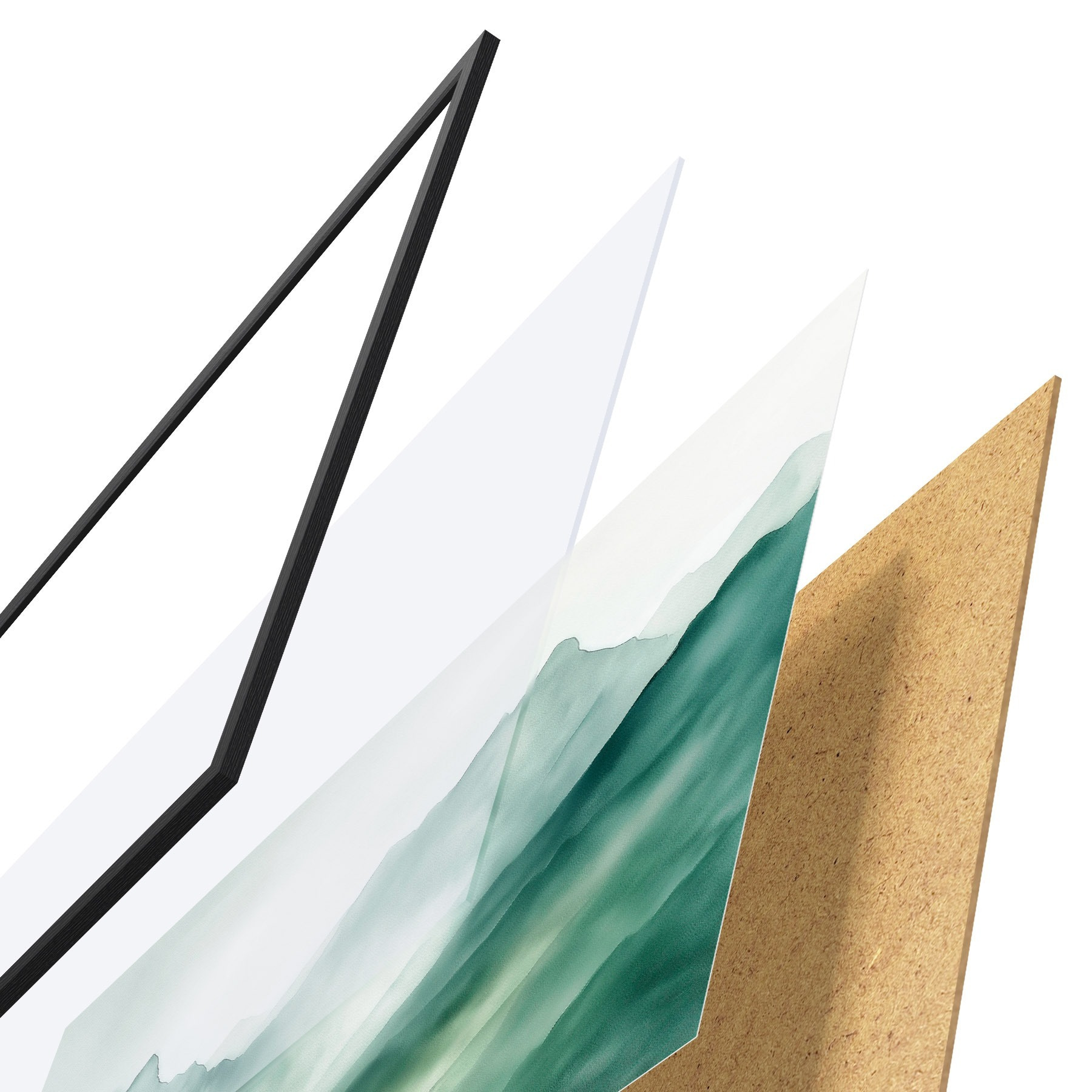 De poster bestaat uit een frame, plexiglas, geprinte afbeelding en spaanplaat achterkant. De poster kan meteen aan de muur worden gehangen dankzij de bevestigingen op de achterkant.