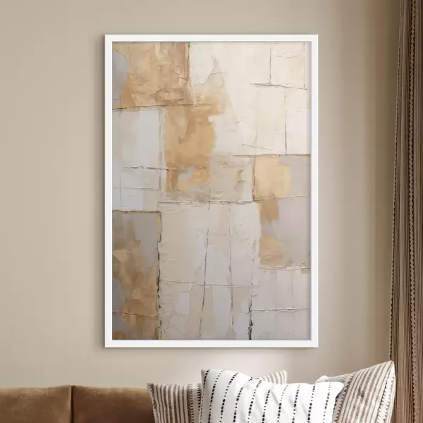 De poster bestaat uit een frame, plexiglas, geprinte afbeelding en spaanplaat achterkant. De poster kan meteen aan de muur worden gehangen dankzij de bevestigingen op de achterkant.