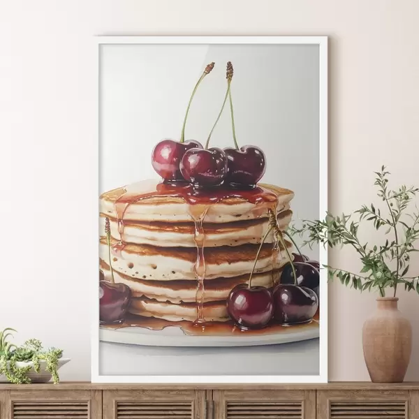 Poster Heerlijke pannenkoeken met kersen en siroop, aquarelstijl Nr f44305