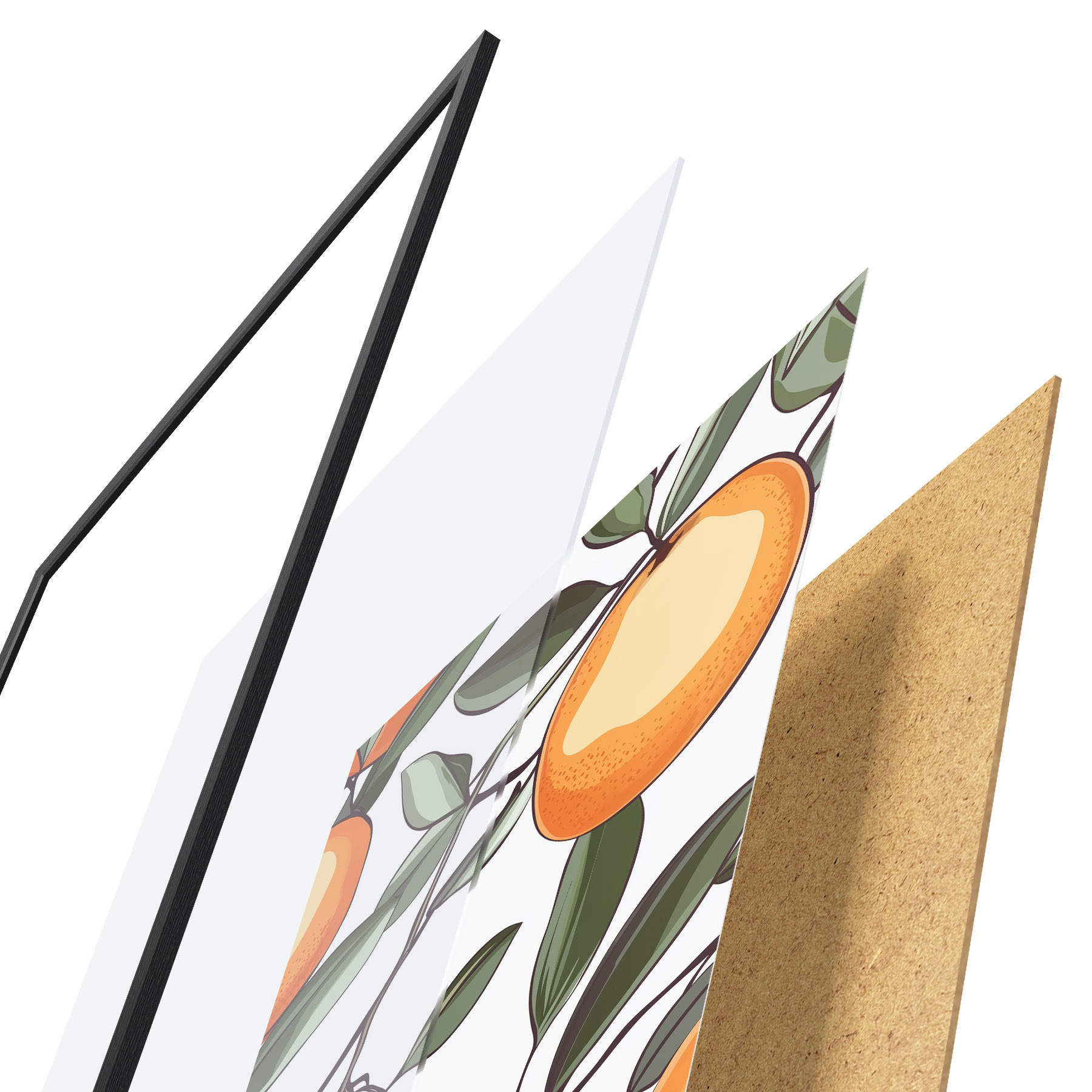 De poster bestaat uit een frame, plexiglas, geprinte afbeelding en spaanplaat achterkant. De poster kan meteen aan de muur worden gehangen dankzij de bevestigingen op de achterkant.