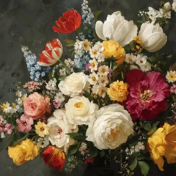 Poster Boeket van diverse bloemen met rijke tinten Nr f44334