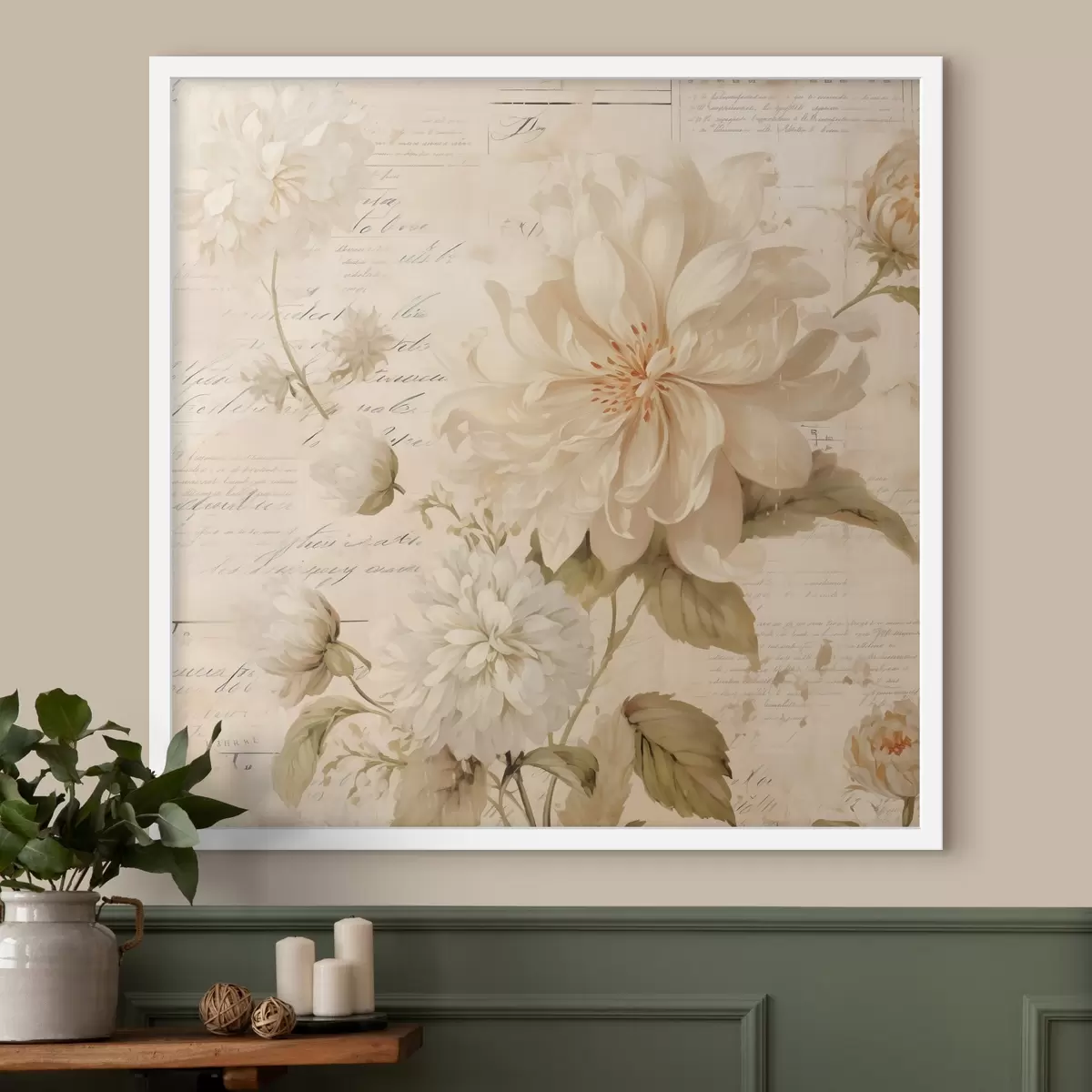 Poster Witte dahlia's op de pagina's van het verleden Nr f44342