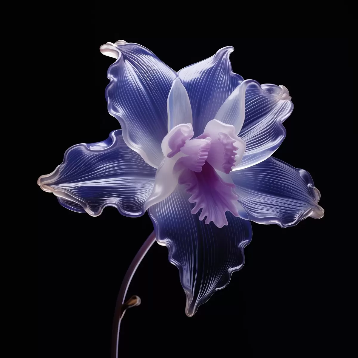 Poster Doorschijnende bloemblaadjes met aders op een zwarte achtergrond Nr f44347