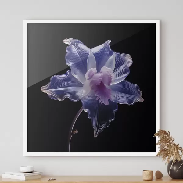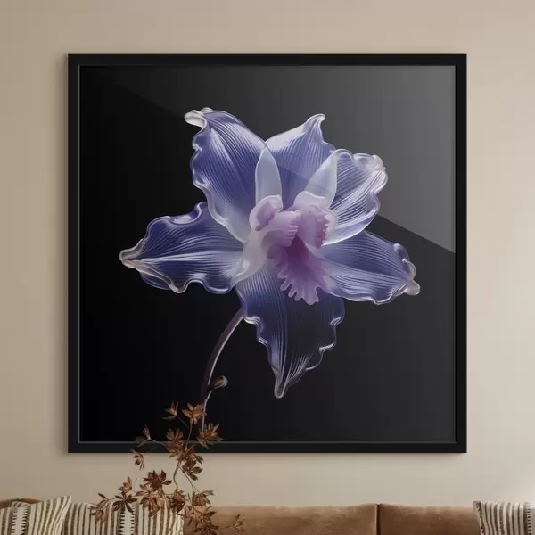 Poster Doorschijnende bloemblaadjes met aders op een zwarte achtergrond f44347