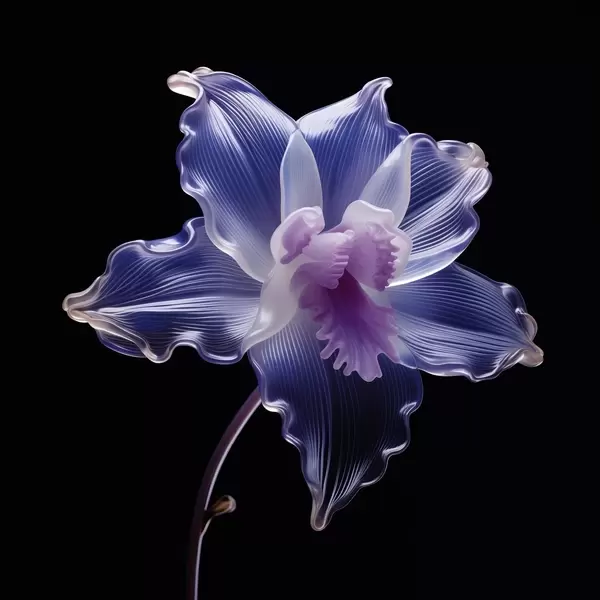 Poster Doorschijnende bloemblaadjes met aders op een zwarte achtergrond Nr f44347