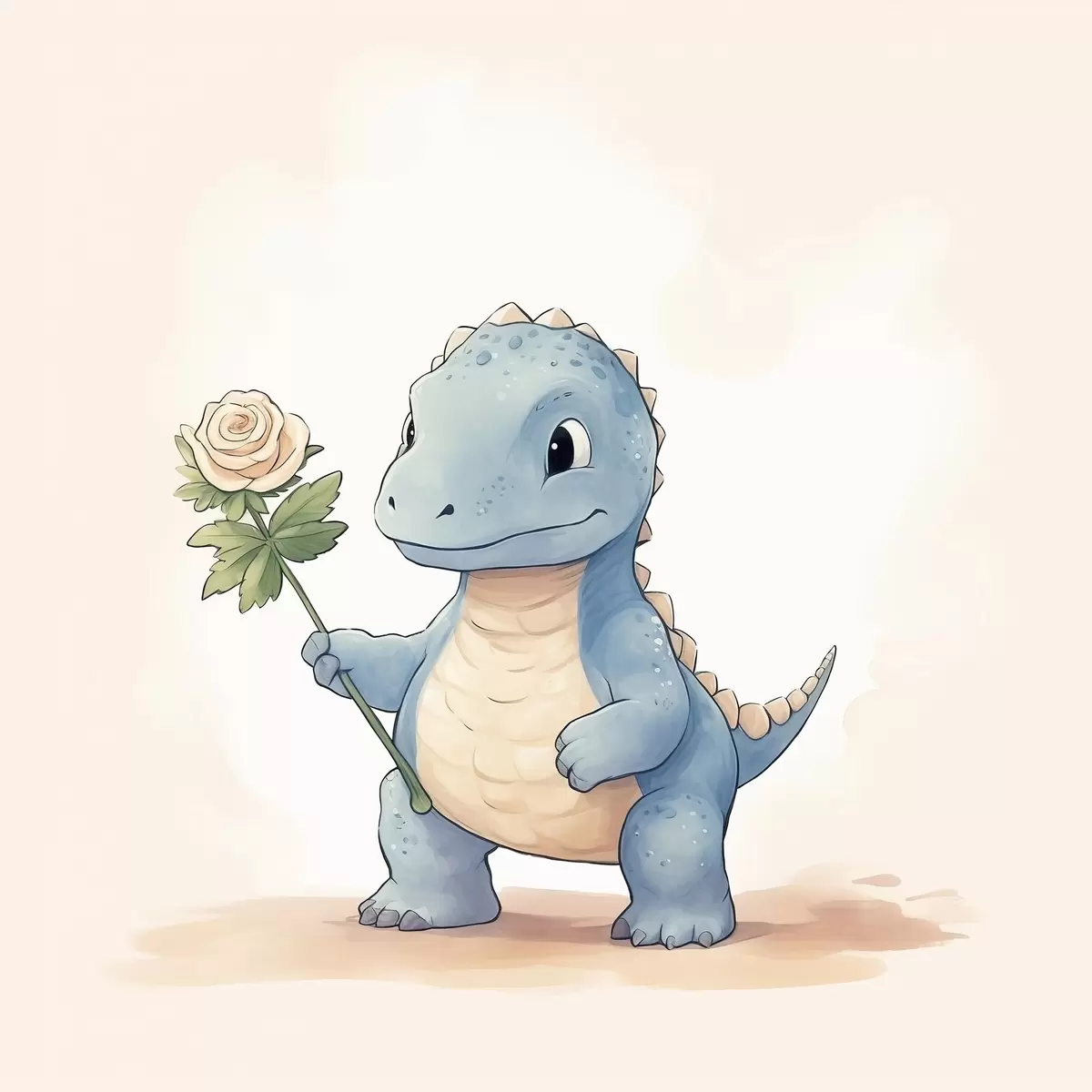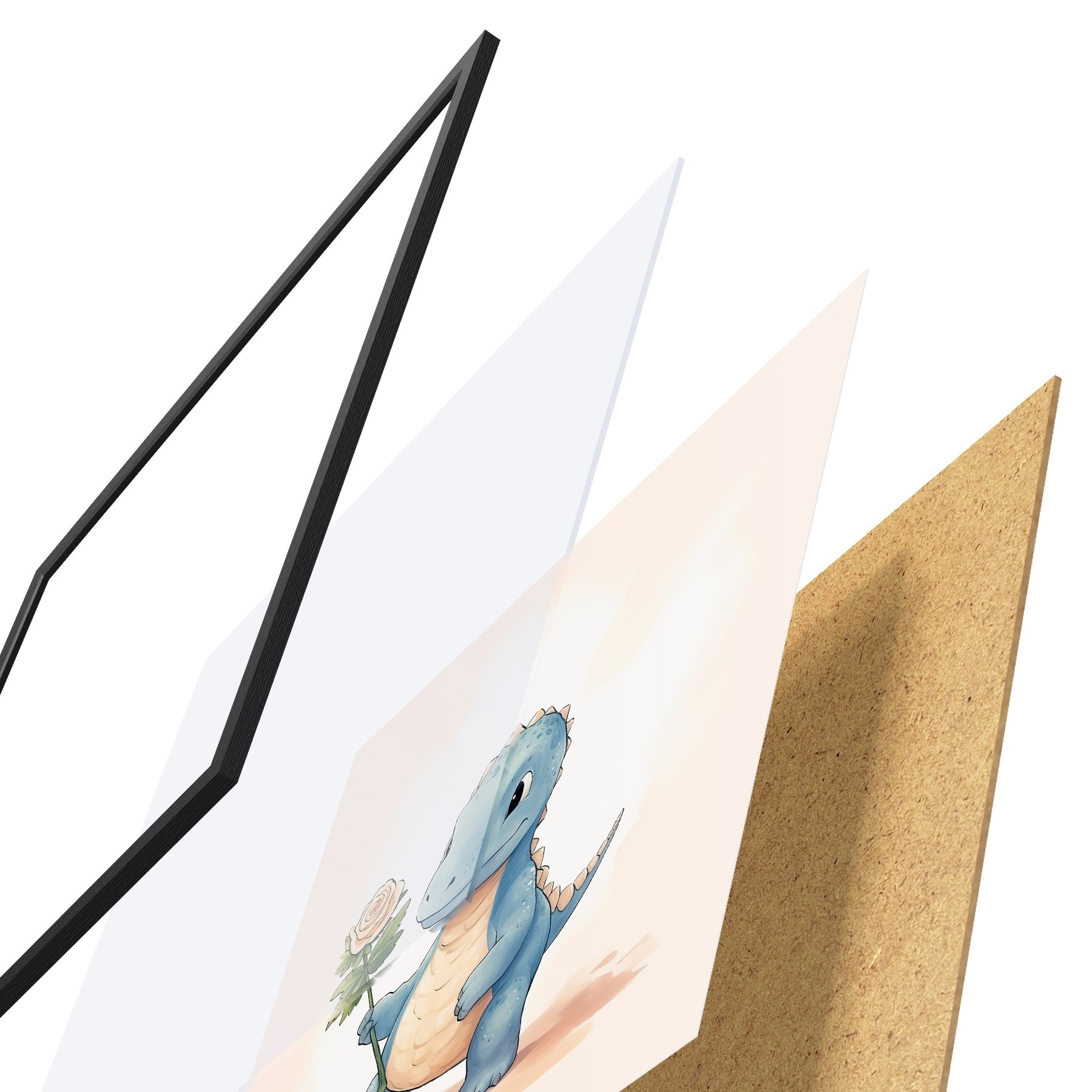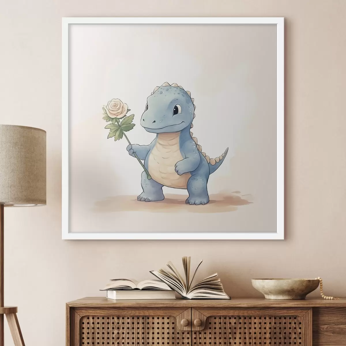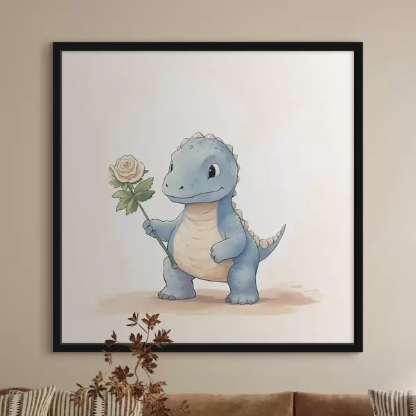 Poster Kleine dinosaurus en een tere bloem Nr f44351